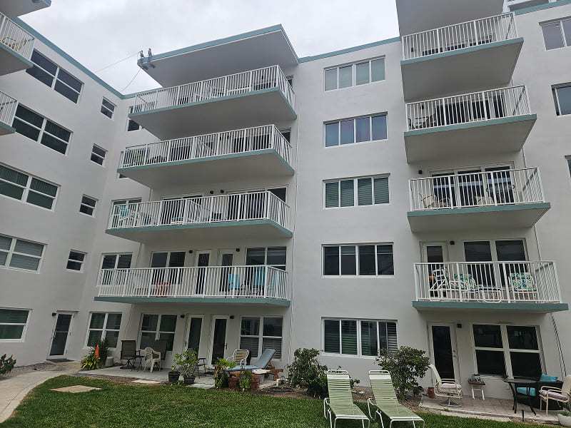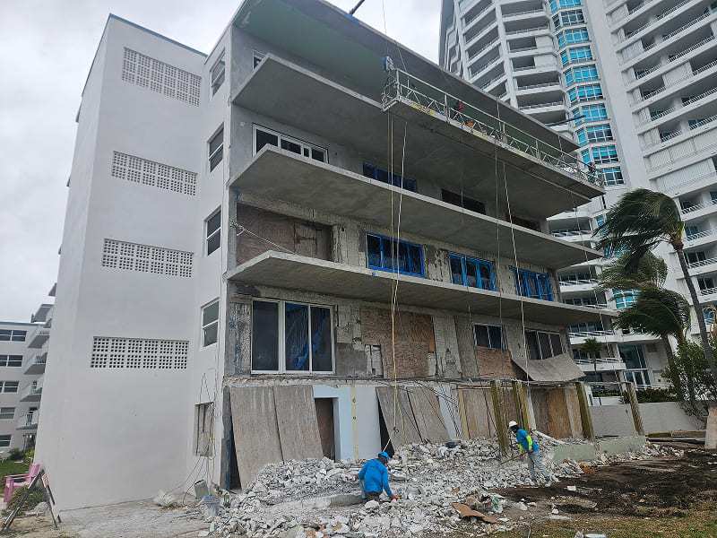 This showcases one of our Florida projects that is nearing completion. Structural Workshop provided an initial Florida Milestone Inspections and SIRS Reserve Study, identifying significant issues needing repair. We then produced design drawings for the repairs, and construction administration and special inspection services. Like many projects of this nature and many ongoing Florida building rehab projects, during construction, additional hidden damage was revealed, requiring additional assessments and details. Portions of the building are now complete and the before and after are striking. We have also included some photos during construction to show the nature and severity of the repairs. These types of repairs are occurring all over Florida right now as buildings long in need of maintenance and repair are making repairs to comply with the new Florida requirements.